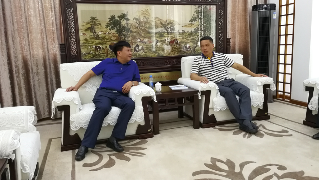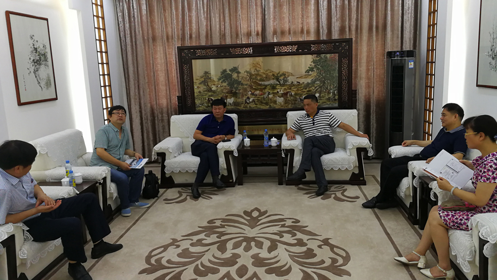 2017年8月8日,華東交通大學校長羅玉峰、軌道交通技術創新中心負責人徐玉萍、機電工程學院王小明教授與黃建華董事長洽談校企合作。